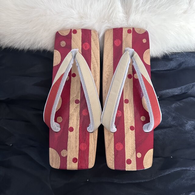 M 赤金 水玉の四角い下駄 三味右近のコピー