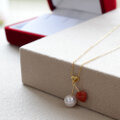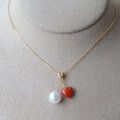 K18 赤珊瑚とアコヤ真珠のペンダント