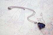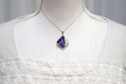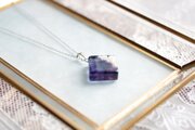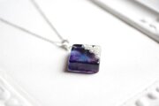パールとお花をスクエア型のレジンに封じ込め、ブルーとパープルで着色したペンダント。