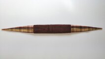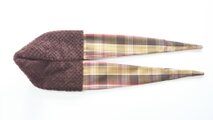 端にかけて先細になるようデザインしました。直接肌に接する中央部にはポコポコ感触のパイナップルボアを、左右の結び目側にはタータンチェック柄のコットンを配置しました。当ショップ既存の『肌ストール』パターンで異素材を合わせて作った秋冬マフラーです。