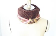 剣先マフラー パイナップルボア×コットンチェック 茶 ① 約145cm