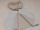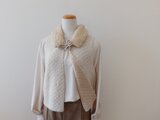 白いアルパカ混の糸とベージュのウール糸を二重に編んだとても軽いベストです。