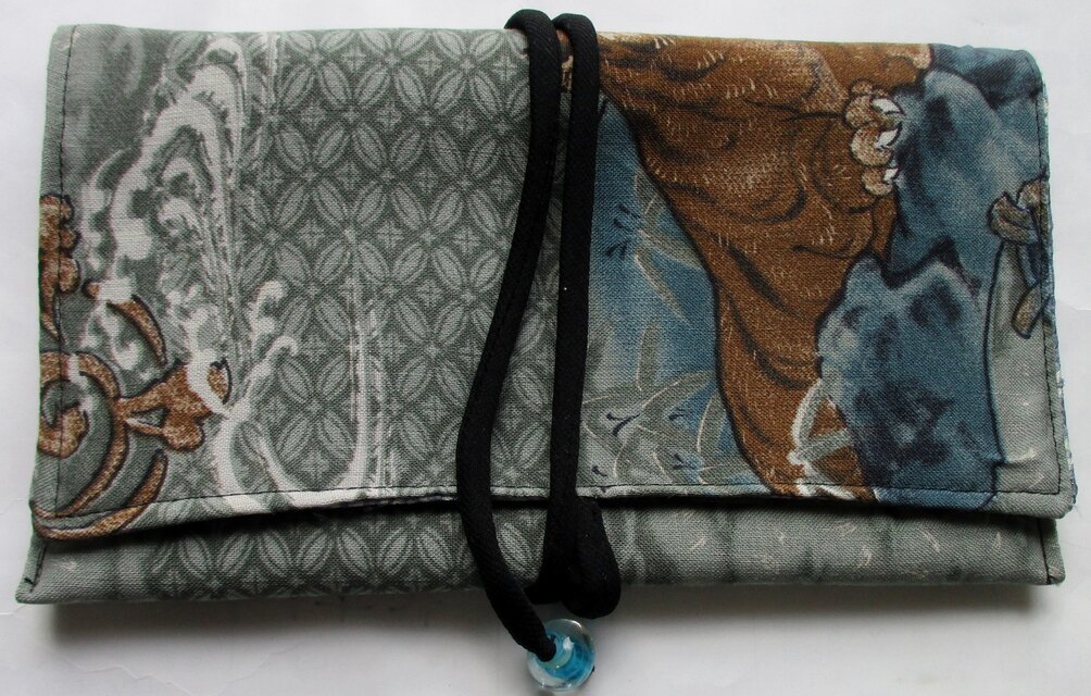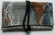 唐桟柄財布 写真より実際の方がいい感じですね、スマホ入れかな?ポーチ(巾着)も付いてて便利そう。和物はなんか落ち着いていいですね、縫製も丁寧で長く使えそうです。
