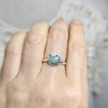 サイズについてもこだわりがあり、リングサイズは約12号のオープンリングとなっており、16号までの調整も可能です。ただし、サイズを大きくすると石枠とアームが離れますので、その点はご了承ください。