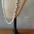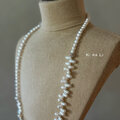 ポテト型のホワイトパールとクレオタイプの艶々パールを組み合わせてロングネックレスに仕立てました。