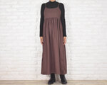 コットンツイルキャミソールギャザーワンピース ジャンパースカート <ココアブラウン>
