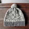 シェットランドウールを使い北欧柄を編み込んだニット帽です。