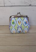 やさしい色合いの小鳥柄がかわいい、がま口コインケースです。