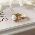 小ぶりのジャパンヴィンテージパールを、繊細なゴールド装飾で包み込んだ真鍮製リングです。