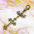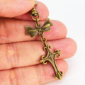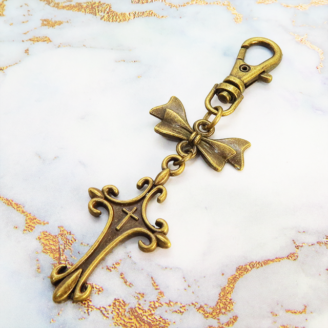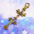 アンティークゴールド ロザリオとリボンのキーホルダー バッグチャーム ファスナーチャーム 金具変更可