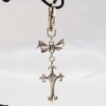 アンティークシルバー ロザリオとリボンのキーホルダー バッグチャーム ファスナーチャーム 金具変更可