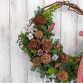 赤のギンガムチェックのリボンがアクセントになった、素朴な印象のクリスマスリースです。