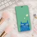 毎晩やってくる 猫 の イラスト ベルトなし 帯なし ベルトレス 手帳型 iPhone スマホ ケース カバー