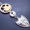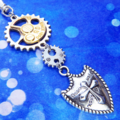 アンティークシルバーと歯車、盾の組み合わせは、ゴシック調の雰囲気も持ち合わせています。