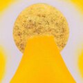 太陽の金箔は制作しながら黄色との調和を見ながら何種類か貼ってるのですが、最終的に二号色(23.2K)⦅金:96.72%銀:2.60%銅:0.68%》が一番しっくり来ましたので仕上げております。若干下の明るめの四号色も残してあり、近くで見ると重なり合う光もお楽しみいただけます。