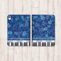 タブレットケース iPadケース 花 ブルーローズ 花柄 薔薇 ピアノ 鍵盤 音楽 音符