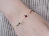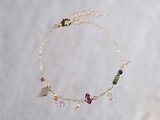 宝石質の天然石や淡水パールを贅沢に繋いだチェーンブレスレット