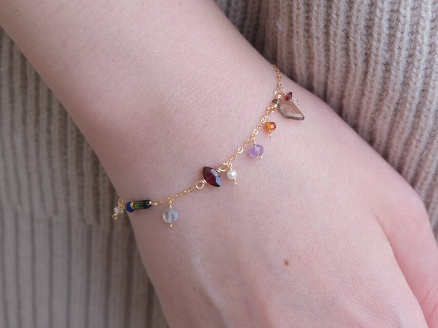 hátíð bracelet 天然石チェーンブレスレット スモーキークォーツ ガーネット シトリン ラピスラズリ トルマリン