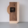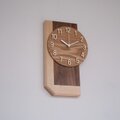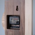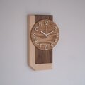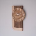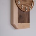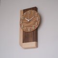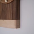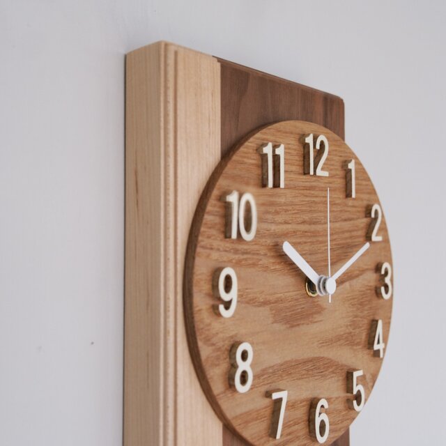 重厚感のあるウォールナットと優しい木目のハードメープルを接ぎ合わせた掛け時計です。
