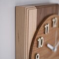木目が美しいタモ材の文字盤と縁周りのデザインが調和し、シンプルでありながらも洗練された印象を与えます。