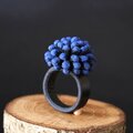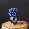 花のモチーフのリングに貴重な天然鉱石ラピスラズリの顔料を施しました。