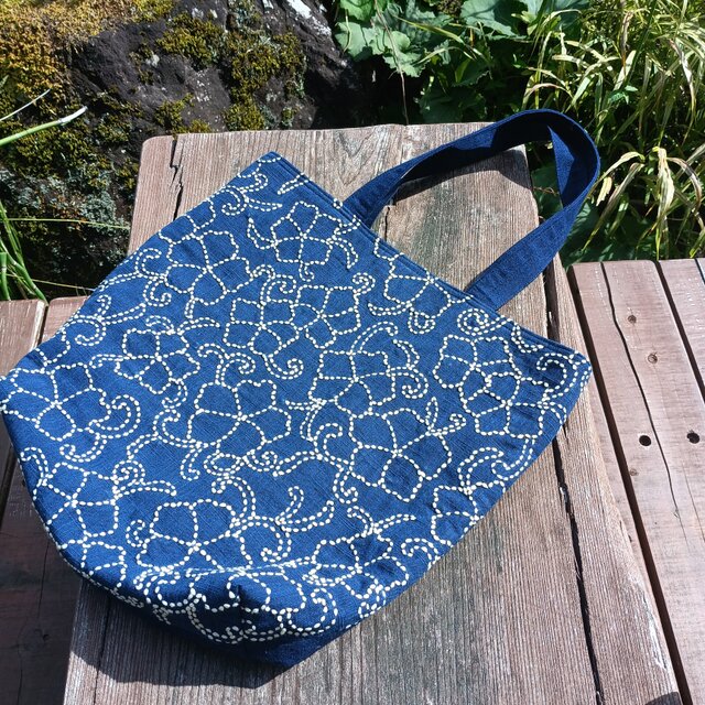 天然藍染・刺し子【一点もの丁寧な手しごとトートバッグ・手提げバッグ】 251013-02