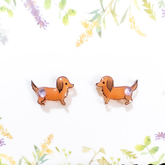 ~小さなピアスシリーズ~ダックスフンドのピアス/ノンホールピアス(樹脂イヤリング)