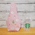 外出先で購入したテイクアウトドリンク、両手がふさがっていても手首に掛けて使用できます。