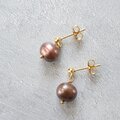 【数量限定】 淡水パールチョコレートブラウン色の一粒ピアス/イヤリング ダークブラウン 秋冬ピアス