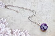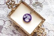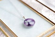 紫と白の二色が織りなす、月面の模様を思わせるデザインが優雅でクラシカルなペンダント。