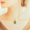 華やかなイエローゴールドの輝きと相まって、デコルテで特別な存在感を放ちます。