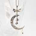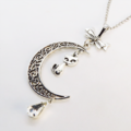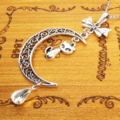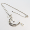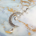 透かし模様の入ったオシャレな三日月と可愛い猫のモチーフに、しずく型のガラス(ティアドロップ)をプラスしてファンタジックなイメージに仕上げています