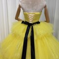 人気上昇!カラードレス イエロー ベアトップ サッシュベルト シークインチュール ボリュームドレス 編み上げ 花嫁