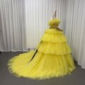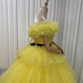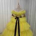 豪華!カラードレス イエロー オフショルダー サッシュベルト シークインチュール ボリュームドレス 編み上げ 花嫁