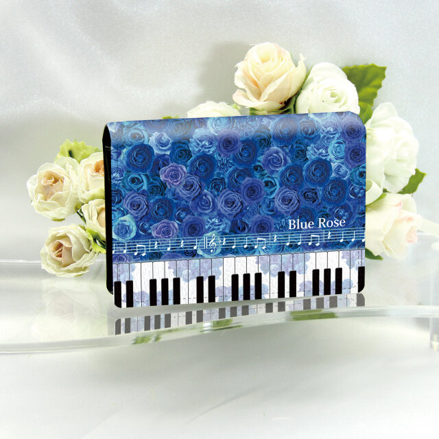 名刺ケース 名刺入れ プレゼント ギフト 花 ブルーローズ 花柄 薔薇 ピアノ 鍵盤 音楽 音符