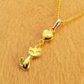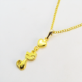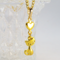 ゴールドカラーの猫とハートのシンプルでコンパクトな可愛いネックレス 長さ変更可