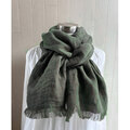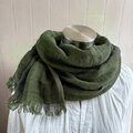 <受注制作>秋冬 ふっくらリネンのストール ダークオリーブグリーン ダブルガーゼ