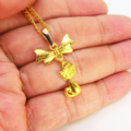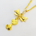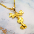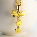 ゴールドカラーで統一した、猫とリボンのシンプルで可愛いネックレスです