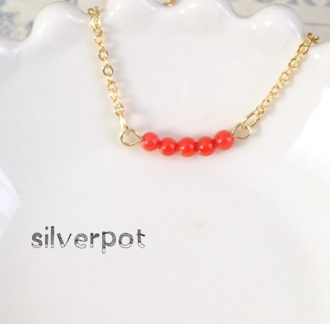 GS106【天然石 赤サンゴ】のプチネックレス~朱色 色&長さえらべます