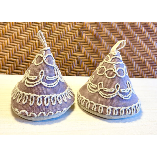 イギリスの布「モンペリエ」で作った三角鍋つかみ サークル模様A