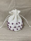水玉模様がぷっくりと浮き出ていて立体的な巾着です。