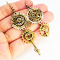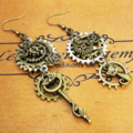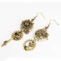猫と鍵と歯車・ギアのスチームパンク風アシンメトリー ピアス アンティークカラー 金古美とても可愛いです! ありがとうございました!