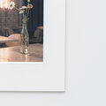 額装用マット紙を用いて写真に余白を与え、そのままの状態で飾っていただけるよう厚みを持たせて仕上げました。印刷には高品質な10色顔料インクと写真用紙を使用しており、色彩豊かなグラデーションと上品な質感をお楽しみいただけます。