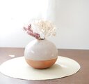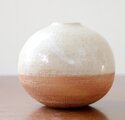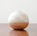 【薪窯焼成】白陶土と藁灰釉の丸い花器 Large