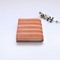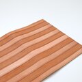数種類のキャメル系の革をカットし、しましまにつなぎ合わせました。