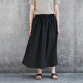 麻100% スラブリネンクロス ギャザースカート(ブラック・黒)他7色 リネン 麻 ロング マキシ ポケット