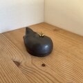 黒土に黒マット釉薬をかけ、最高温度1240度で2度焼いています。