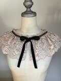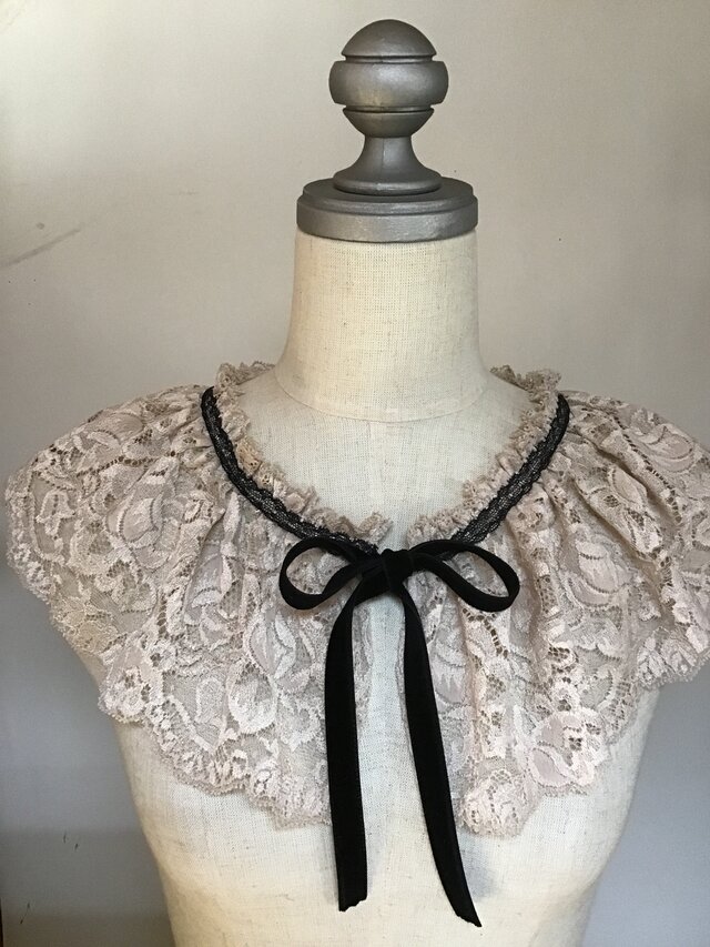 ふんわり、優しいベージュカラーに繊細なレースをたっぷりあしらい、首元を華やかに彩る付け襟です。