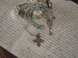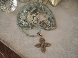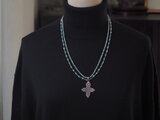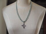 一目で気に入った淡いブルーグリーンのアパタイトに美しい細工の銀のクロスをあわせたネックレスは静かな聖夜のイメージにぴったりです。