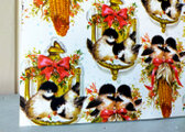 薄手ですが、ハリのある紙質です。アイボリーホワイトのベースカラーに、コーンスワッグやドアノッカーに仲良くとまってさえずる小鳥達が描かれています。ふゆげのふわふわした姿がなんとも愛らしく、まるで絵本の1ページのようなあたたかみのある絵柄です。